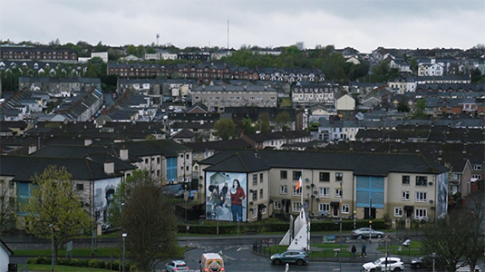 Synopsis – A Wide River Divides Us celebrates the city of Derry/Londonderry, its energy and modernity. Following the poet from the east bank of the river to the west. She turns away from the Foyle to sweep through the embattled streets of her seventies’ childhood, when a chance encounter unlocks memories of her Protestant working-class heritage and experience, causing her to reassess the complexity of loss, displacement and belonging.