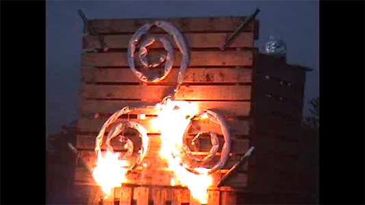 Synopsis – The Convention of Uisneach was said to take place at bealtaine and was known as one of the three great assemblies of Ireland. The Norman chronicler Giraldus Cambrensis referred to Uisneach as the ‘Umbilicus Hiberniae’ and it has been called the navel and centre of Ireland. A huge glacial erratic on that hill called Ail na Míreann (The Stone of Divisions) is said to be the place where the four provinces of Ireland meet. The film contains documentary footage from 2009 and 2010 when fires were lit on the hill. In 2009 the launch event of the ‘Festival of the Fires’ occurred. The following year a much larger event was hosted on the hill with a full day of music, a parade and the lighting of a bonfire at sunset.